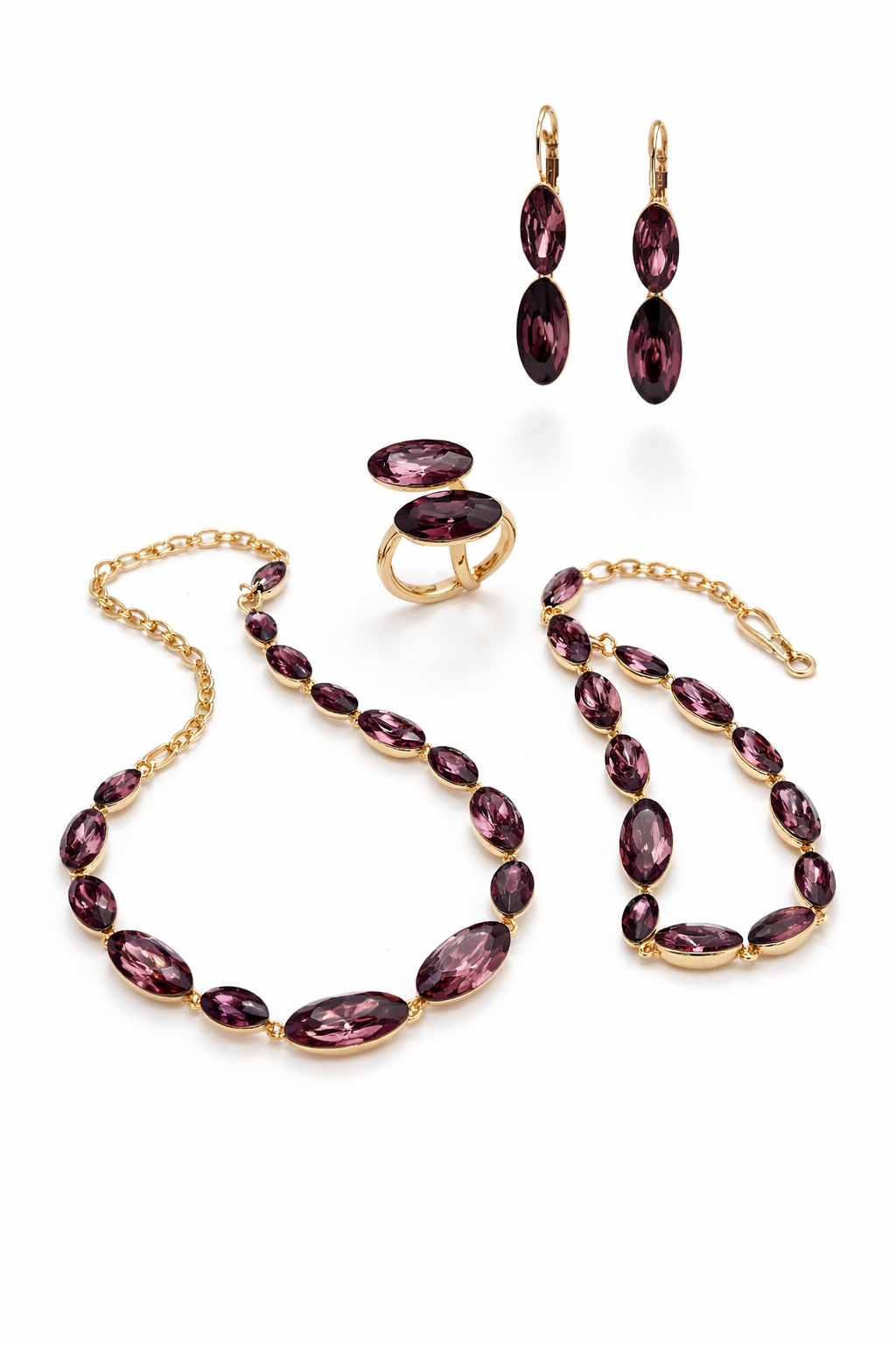 Cristales Swarovski originales, reconocidos mundialmente por su precisión de corte y luminosidad. Todas las piezas están confeccionadas en rodio, aportando un acabado fino y contemporáneo.Una colección para mujeres que valoran excelencia y autenticidad.