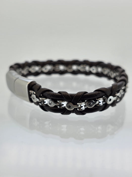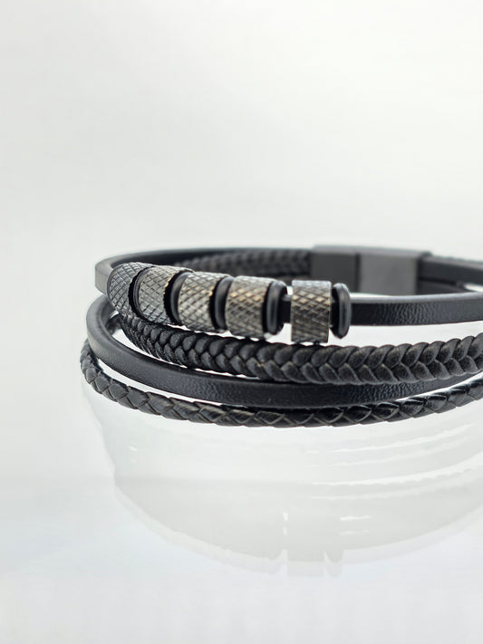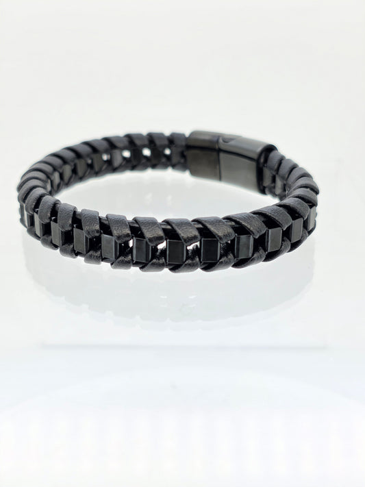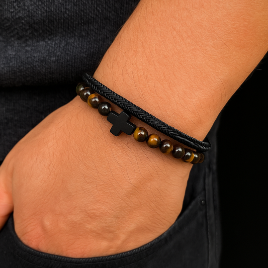 Pulsera varón cuero y piedras naturales Jose Antonio