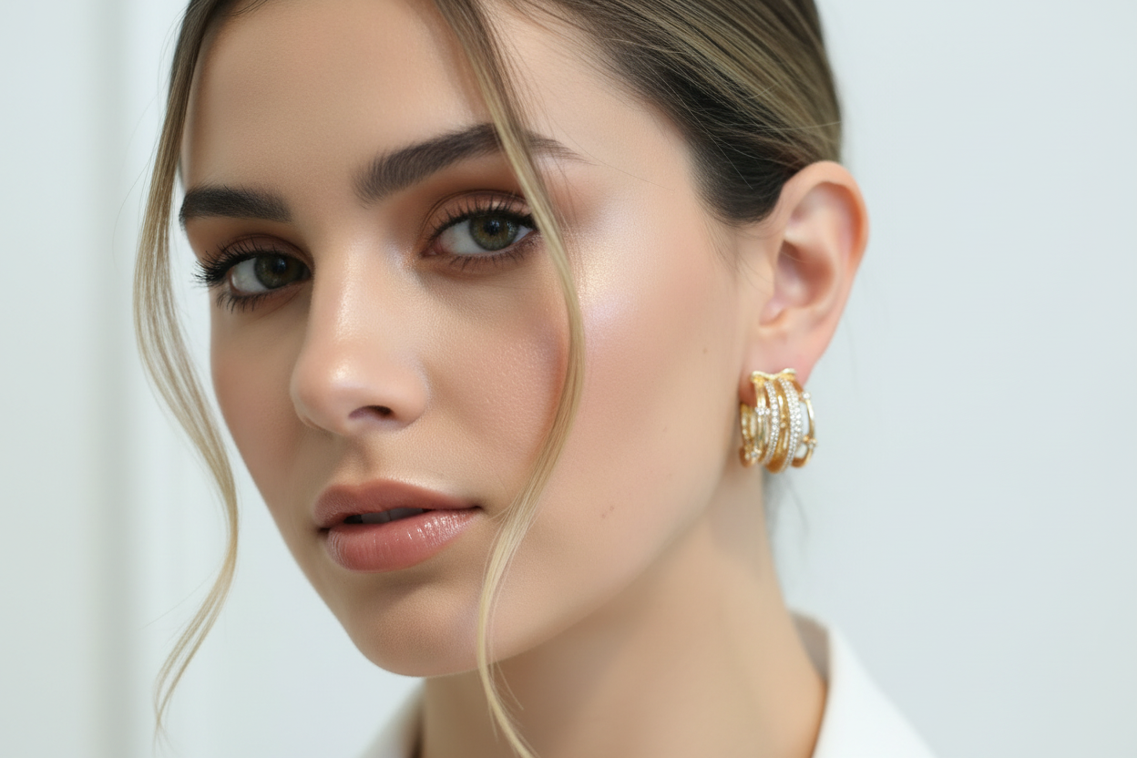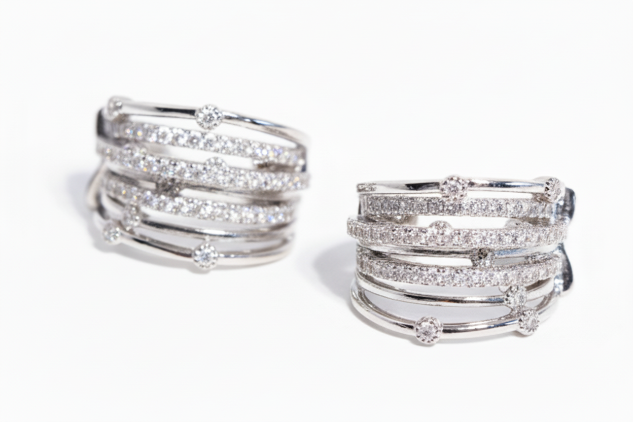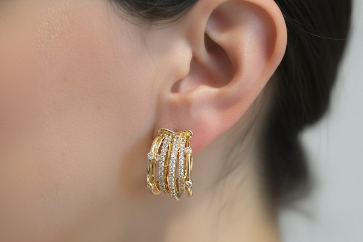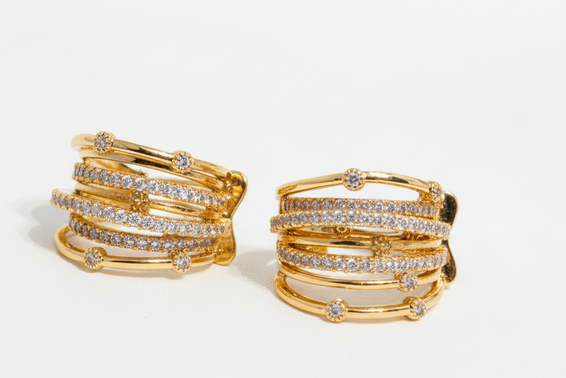 Los Aros Aura Entrelazada destacan por su diseño contemporáneo de múltiples líneas que se cruzan armoniosamente, creando un efecto envolvente y sofisticado. El brillo de los cristales aporta luz y elegancia en cada movimiento, logrando una joya moderna, versátil y atemporal. Son livianos, cómodos y perfectos para elevar un look diario o acompañar un outfit más formal. Un diseño con carácter, pensado para mujeres que buscan joyas con presencia y estilo refinado.