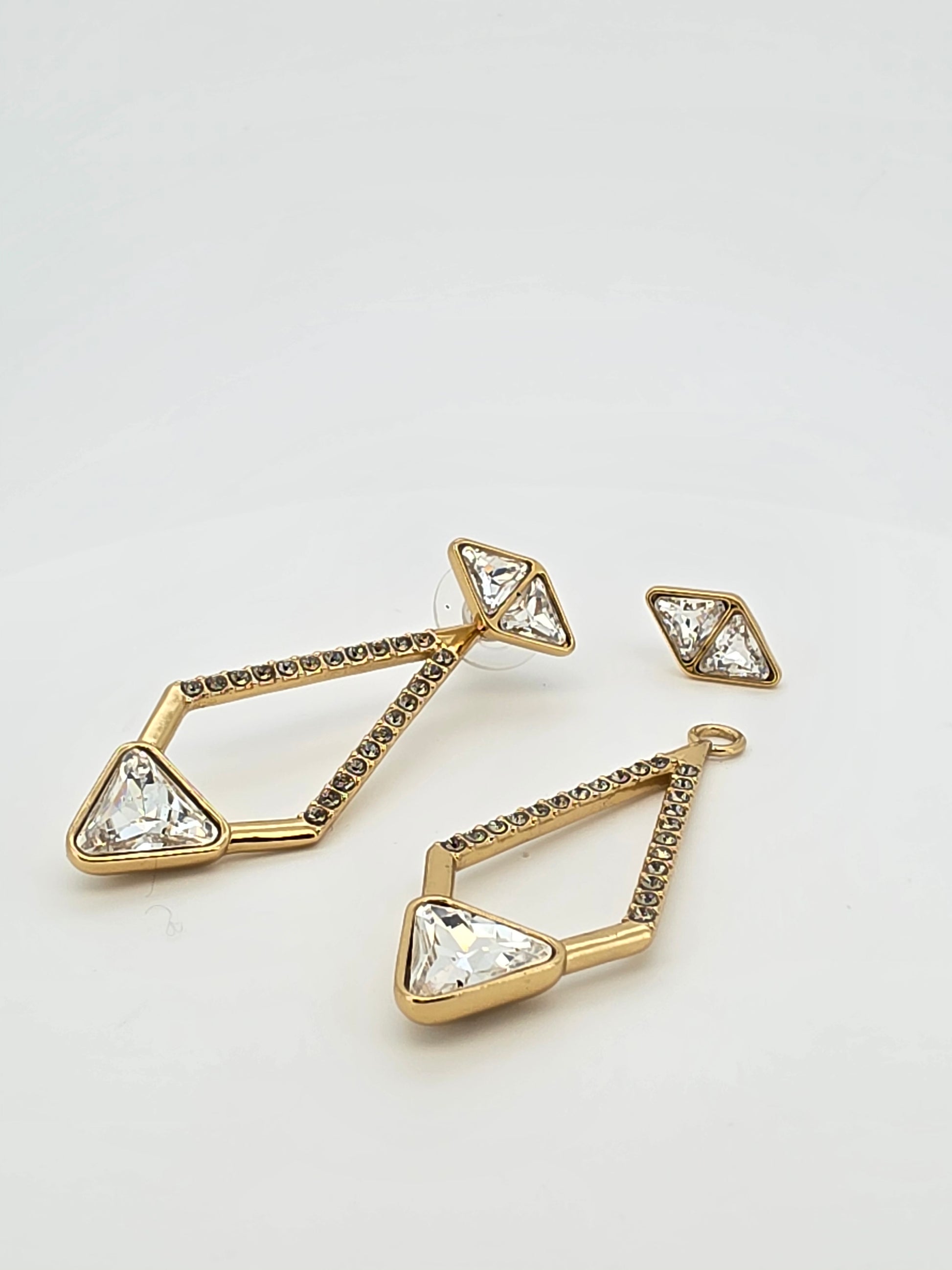 Estos aros forman parte de mi colección privada de cristal Swarovski, diseños exclusivos creados por mí y fabricados directamente por Swarovski para mi marca. Son piezas únicas, llenas de carácter y elegancia, que reflejan la innovación y el lujo de la alta joyería.