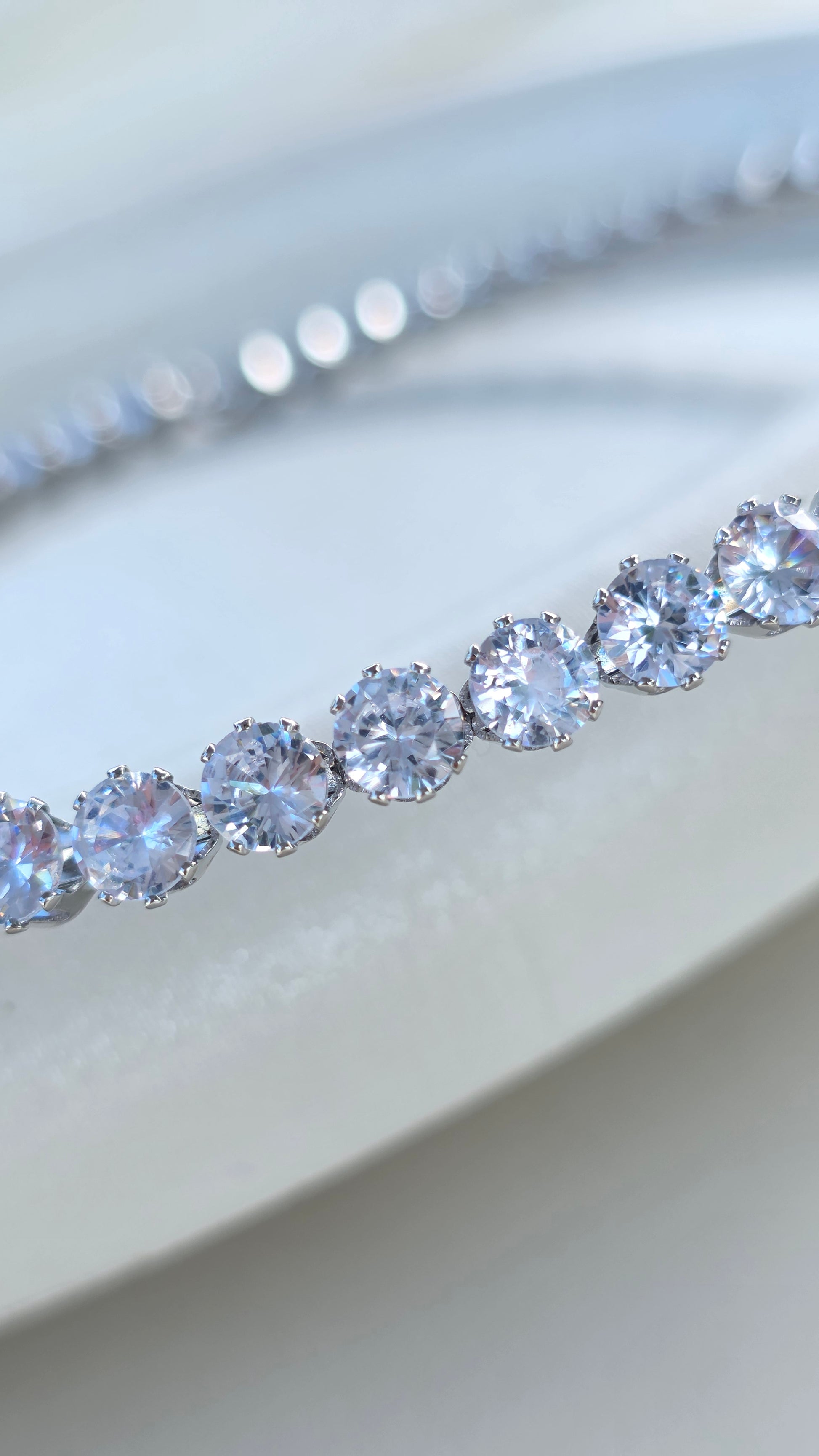 Choker delicado y luminoso elaborado con cristales pavé engarzados uno a uno, que recorren todo el contorno aportando un brillo continuo y elegante; su terminación bañada en oro realza la pieza y la convierte en un complemento sofisticado, ideal para elevar looks diarios o acompañar ocasiones especiales, destacando el cuello con un efecto joya atemporal. Cuidados esenciales: no mojar, no perfumar, no dormir ni hacer deporte con la joya, evitar roces y tirones, guardarla siempre en su estuche y limpiarla ocasionalmente con paño suave para mantener su brillo.