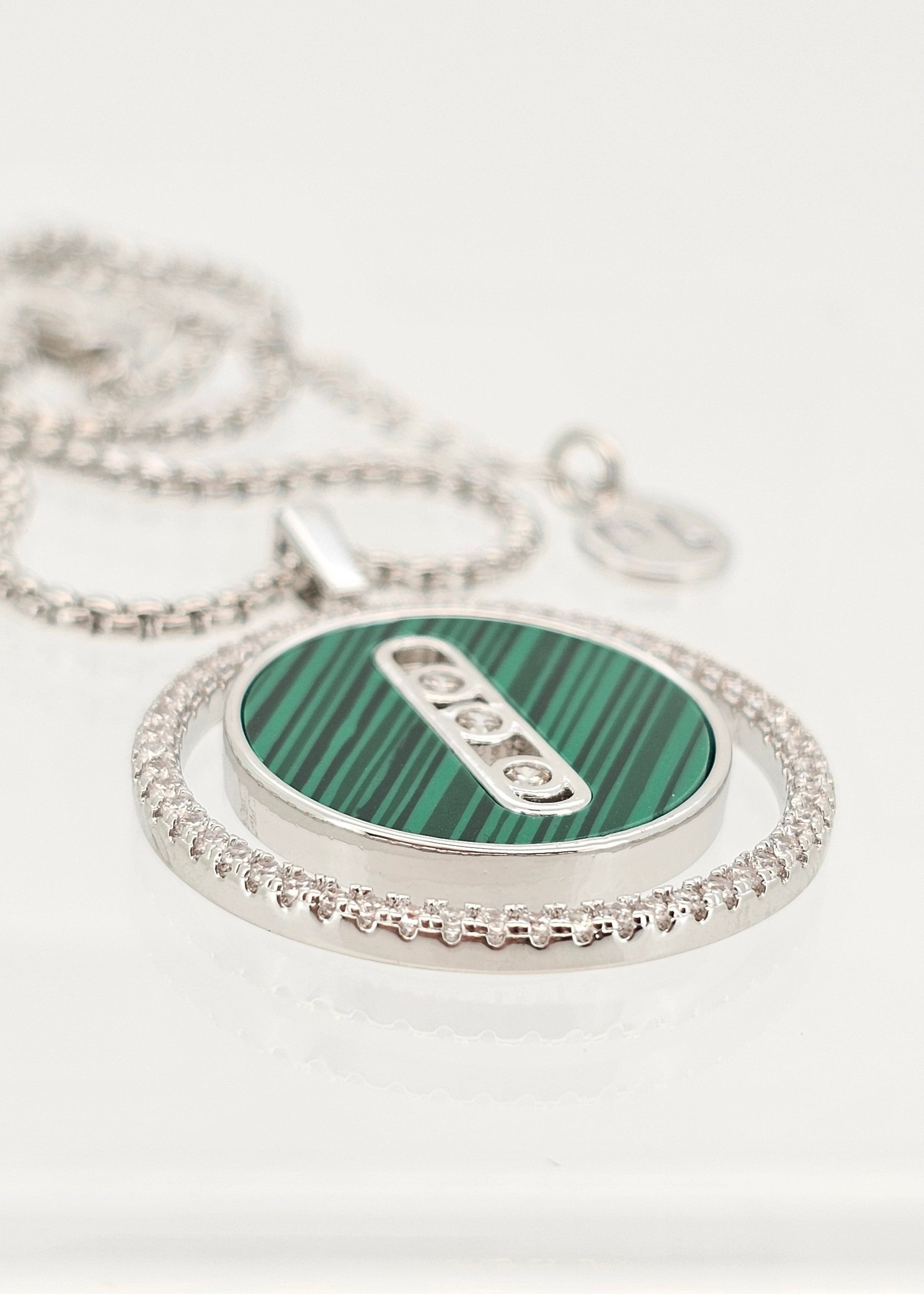 Y en plateado rodinado esta Confeccionado en malaquita y cristal pavés.