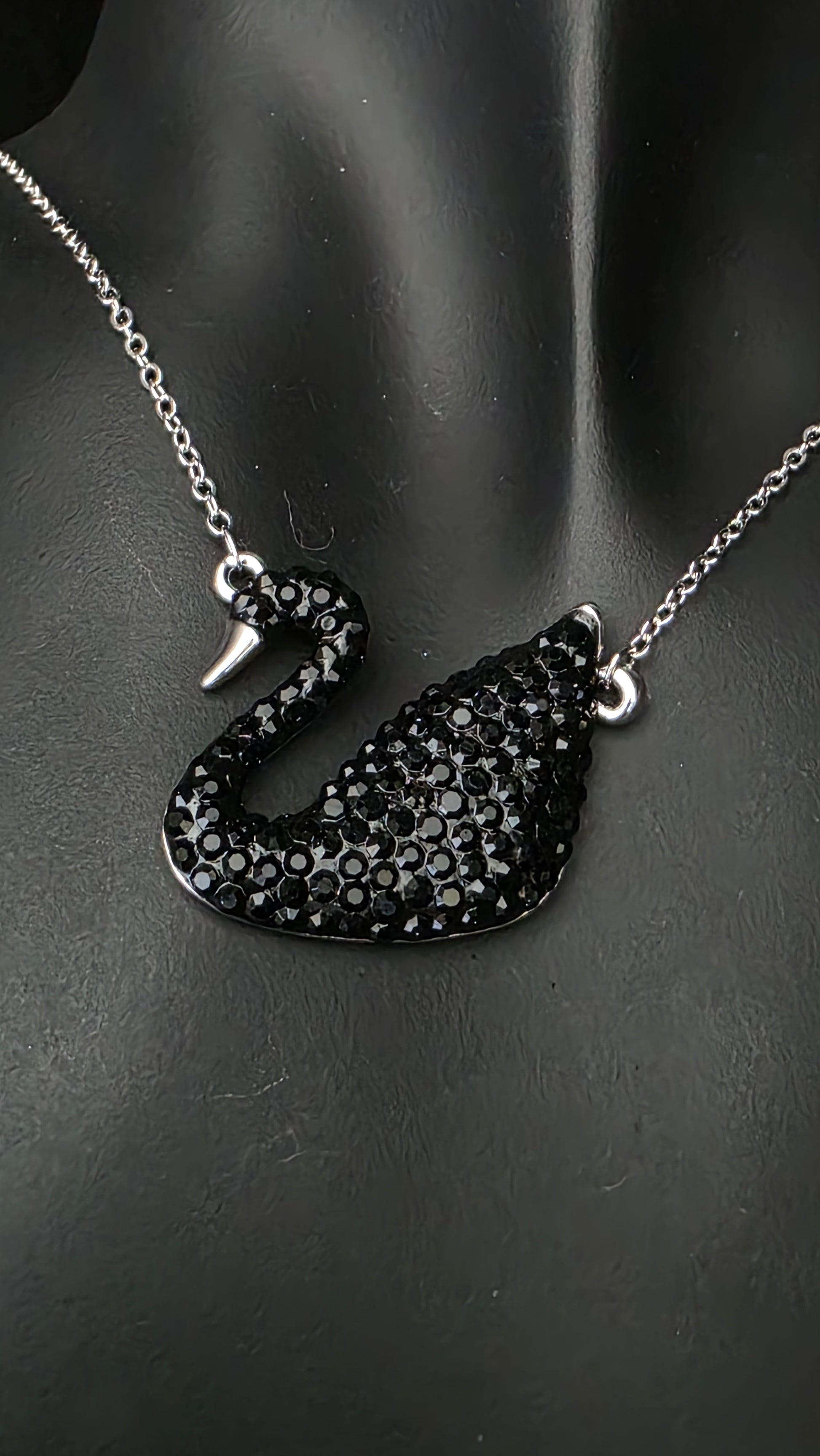 Símbolo de elegancia, fuerza y misterio. Este collar Swarovski destaca por su imponente colgante en forma de cisne, completamente engarzado con cristales pavé negros que reflejan la luz con un brillo intenso y sofisticado.