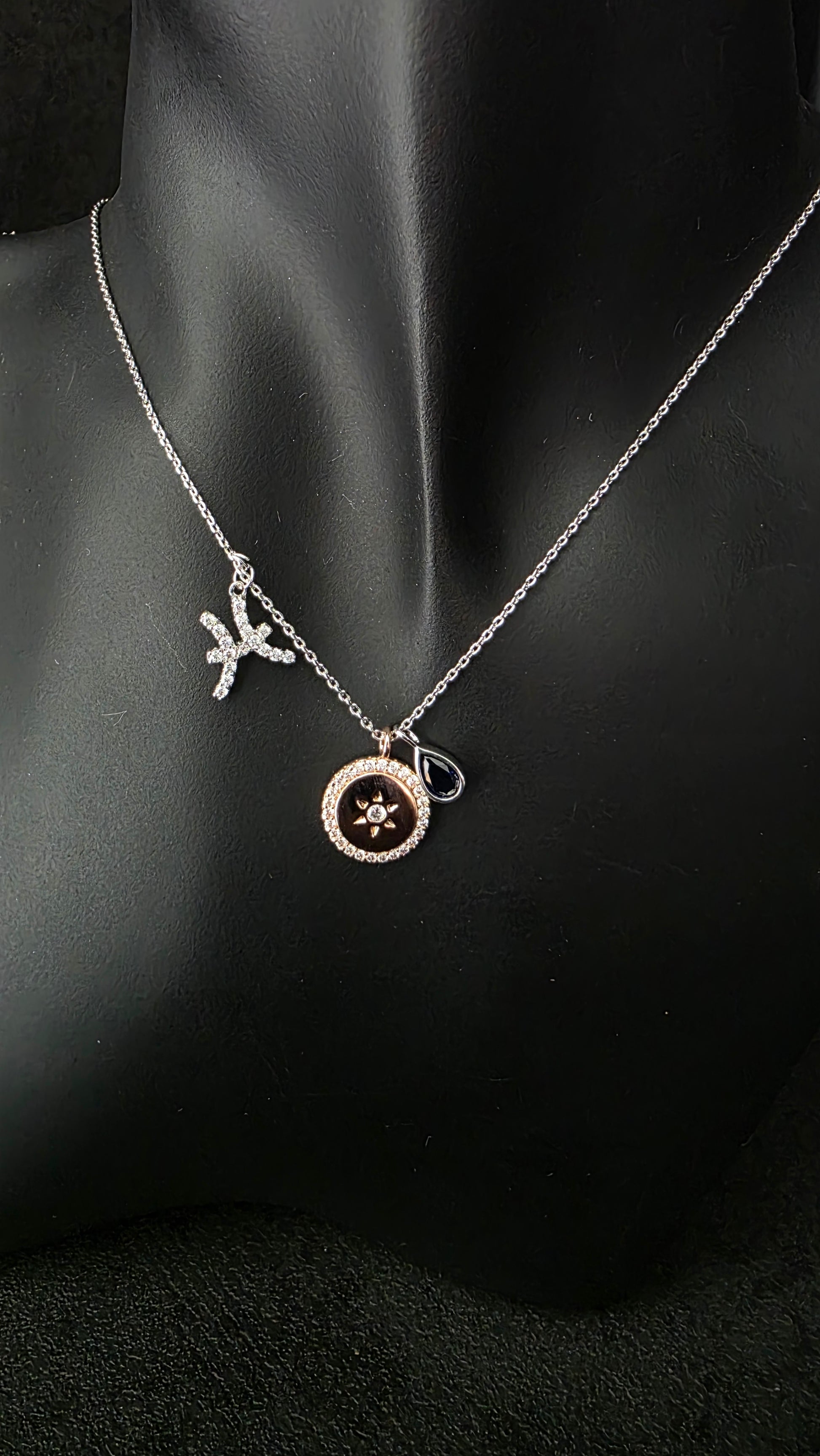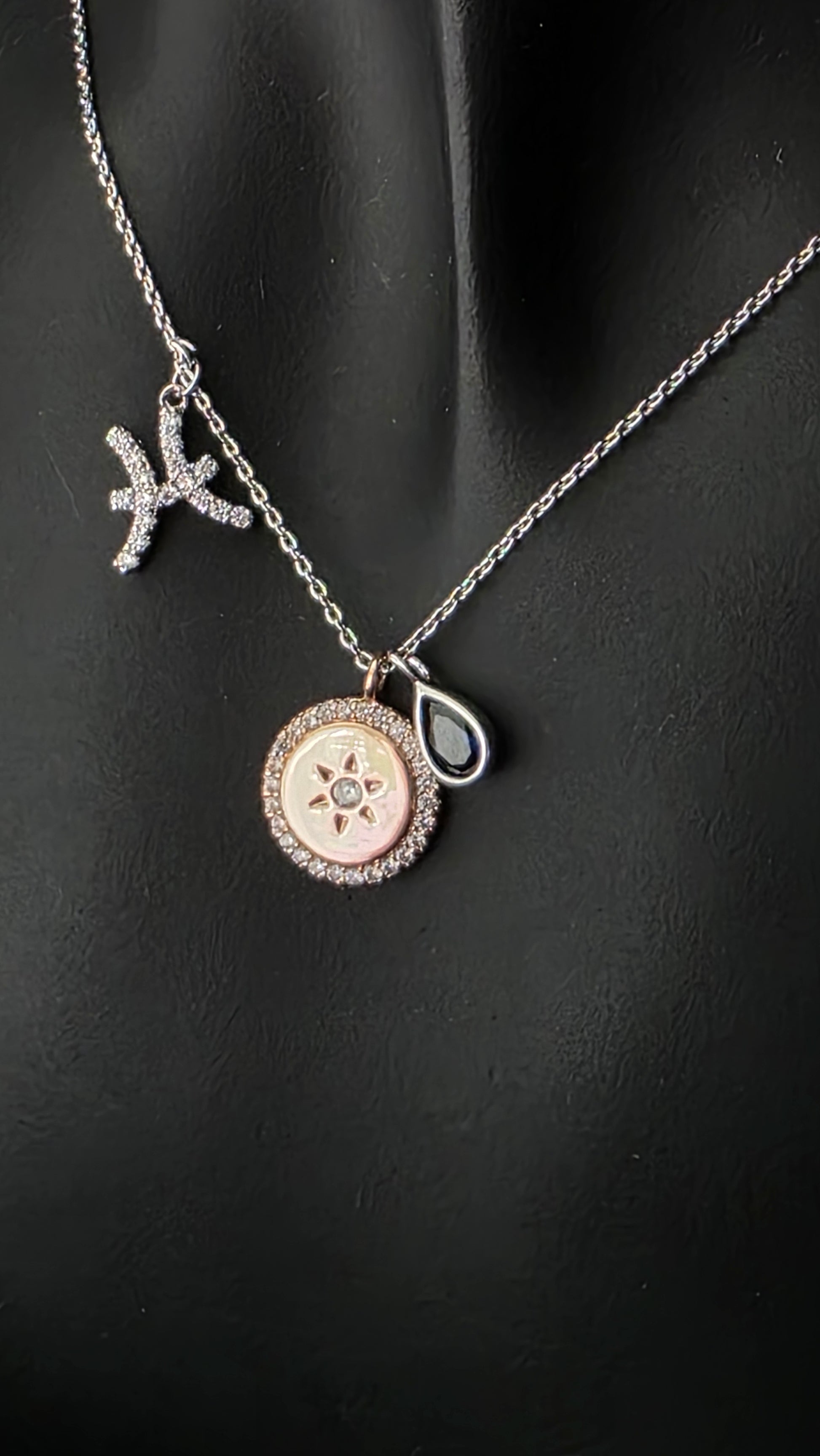 Una colección pensada para mujeres que buscan una joya con significado personal y elegancia atemporal. Cada collar representa un signo del zodiaco, combinando baños de oro y delicados toques en Gold Rosé, junto a un medallón central rodeado de cristales pavé que capturan la luz con un brillo único.