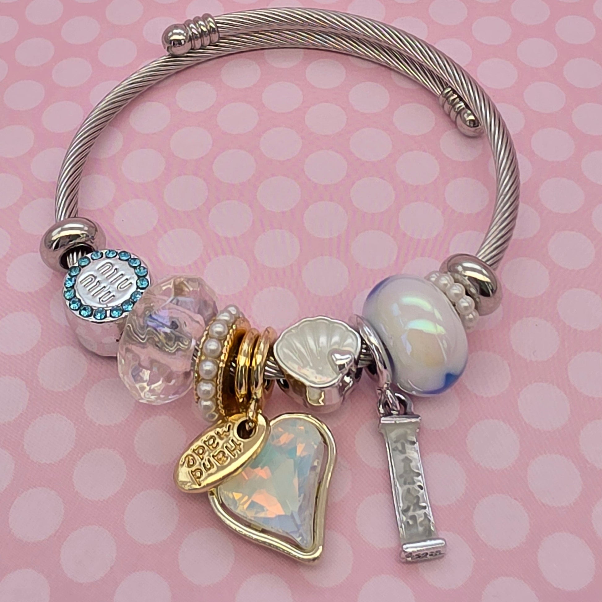 Pulsera de acero con dijes de baño de rodio ajustable. Diseños para las mini lobos que quieran tener su primera joya.
